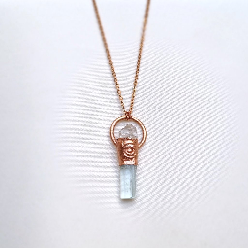 Akvamarín a topaz - přírodní krystaly - autorský šperk/náhrdelník ŠPERKY S PŘÍRODNÍMI KRYSTALY