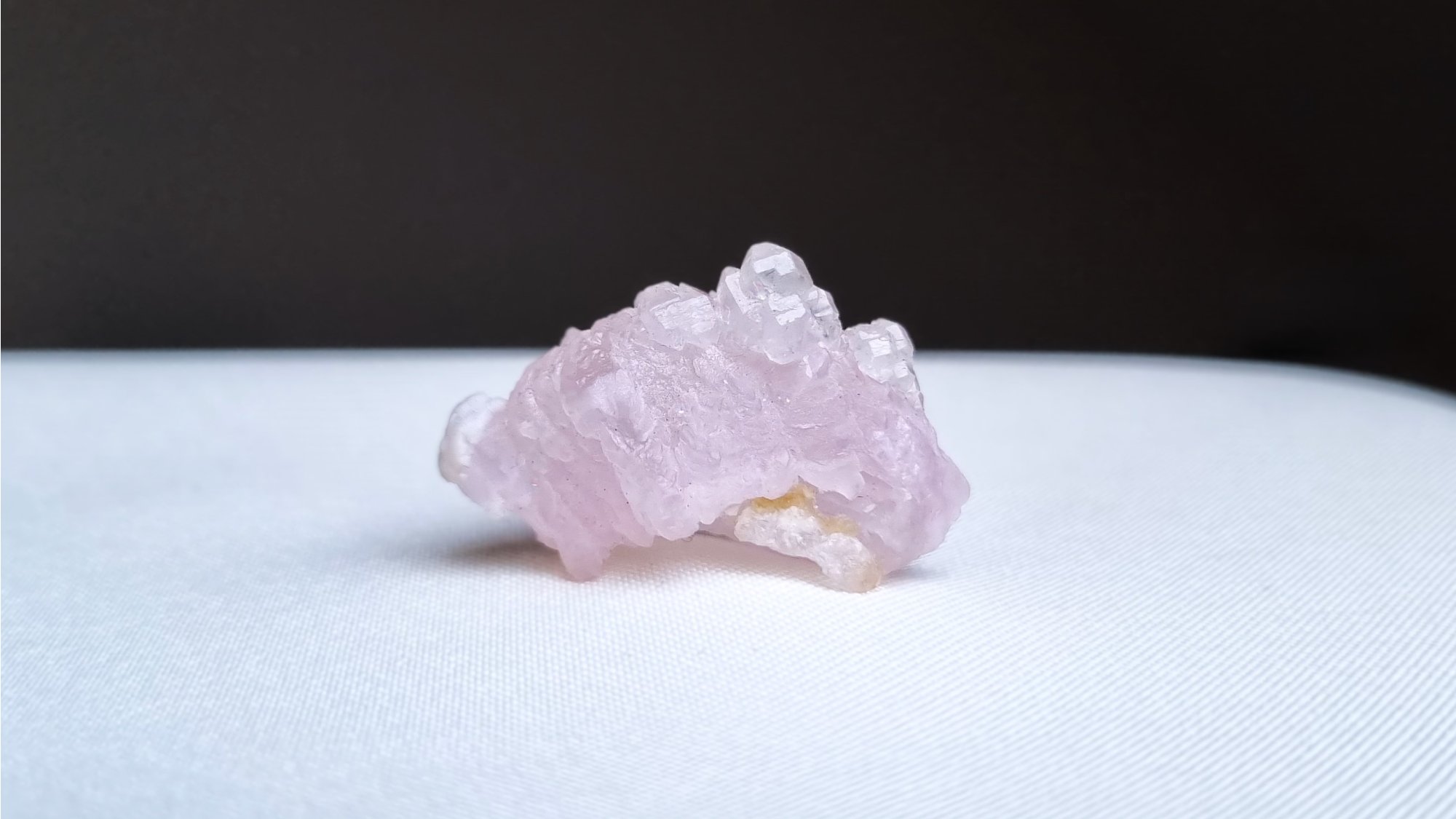 Tento krystalický růženín je opravdovým pokladem mineralogie. Na rozdíl od běžného masivního růženínu, který tvoří neprůhledné růžové agregáty, krystalický růženín vytváří drobné, průsvitné krystalky – a ty jsou opravdovou raritou i mezi sběrateli.