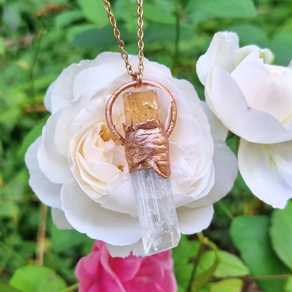 Chrám světla ✨Tento šperk je alchymií nebeského a pozemského. Mistrovský krystal danburitu z Mexika - země Mayů a šamanů, krystal neskutečně silný a průzračný, nesoucí otisk andělských sfér, je klíčem k jemným vibracím, k otevření srdce a napojení na vyšší vedení.