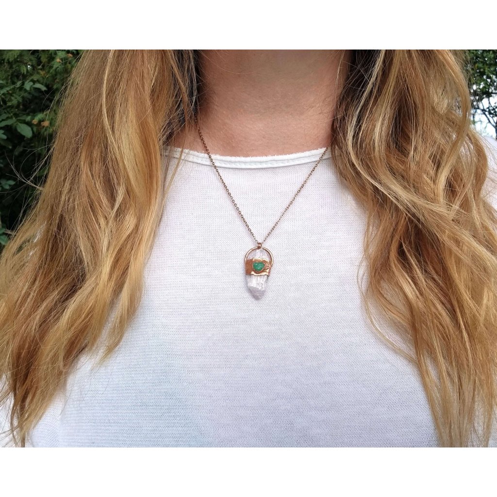 Kunzit a smaragd, přírodní krystaly - přívěsek/náhrdelník ŠPERKY S PŘÍRODNÍMI KRYSTALY