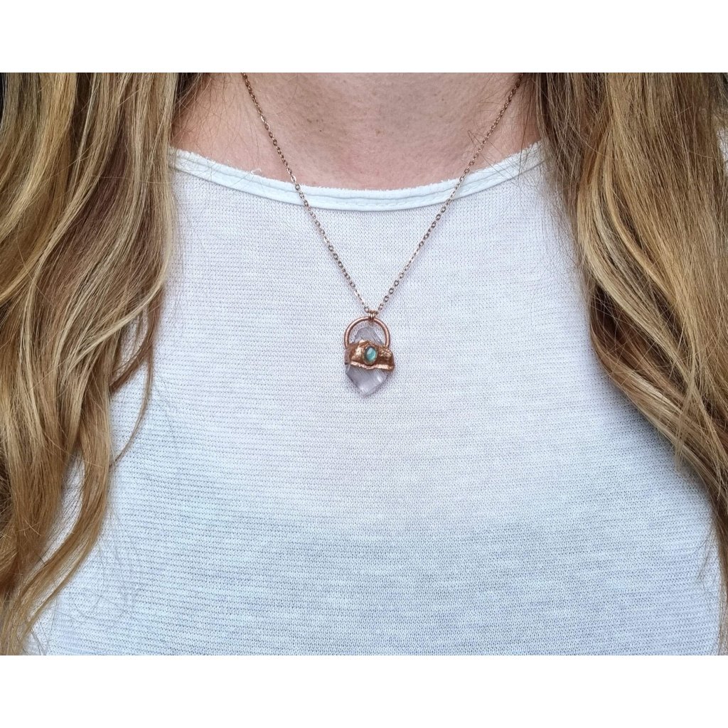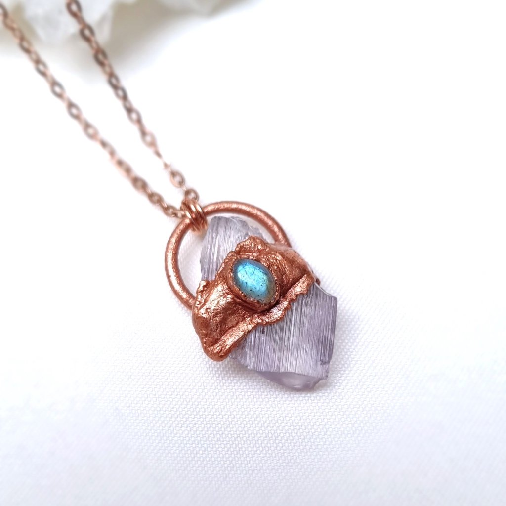 Kunzit krystal a broušený labradorit - šperk/náhrdelník ŠPERKY S PŘÍRODNÍMI KRYSTALY
