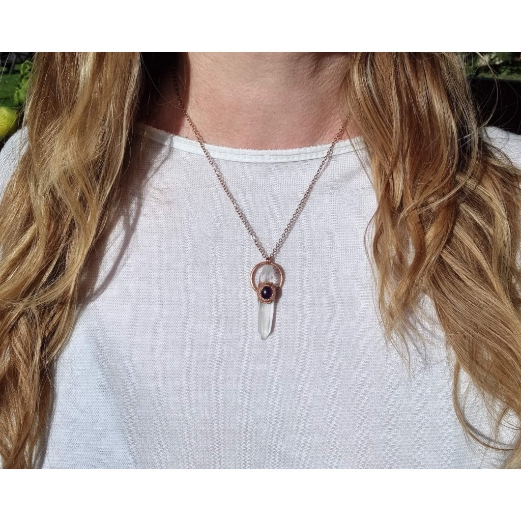 Lemurský křišťál a fialový ametyst - šperk/náhrdelník ŠPERKY S PŘÍRODNÍMI KRYSTALY