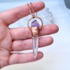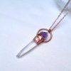 Měděný přívěsek s přírodním neopracovaným ametystem a lemurským křišťálem.