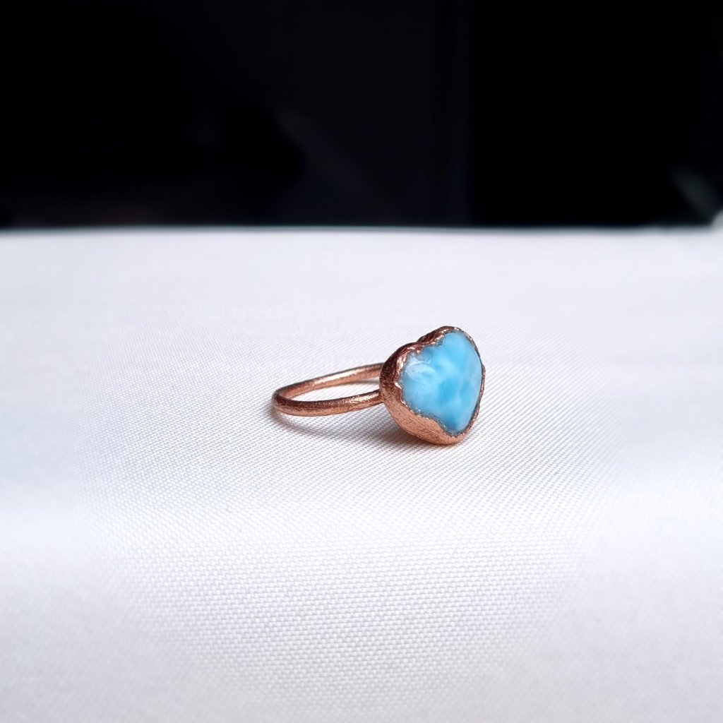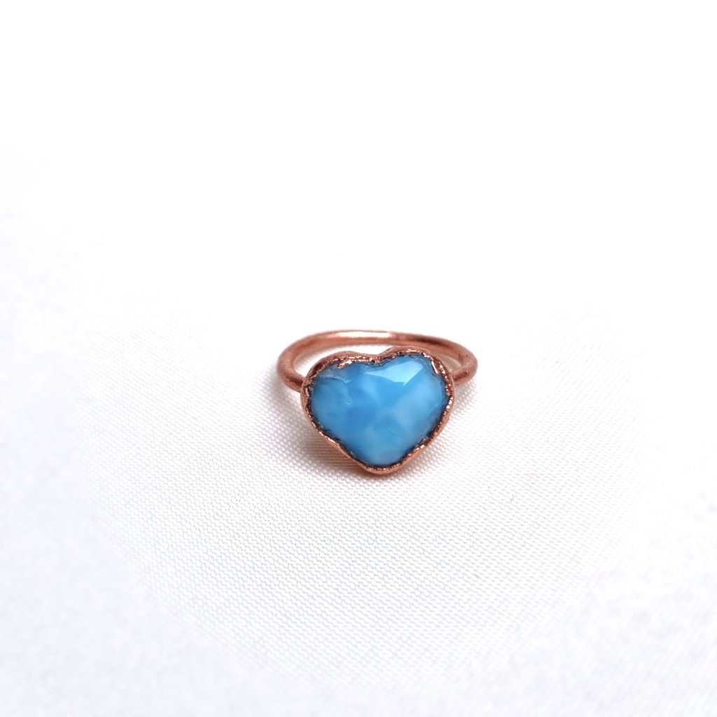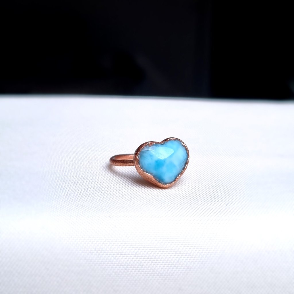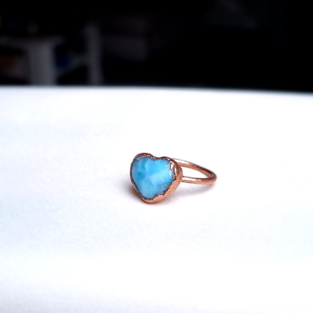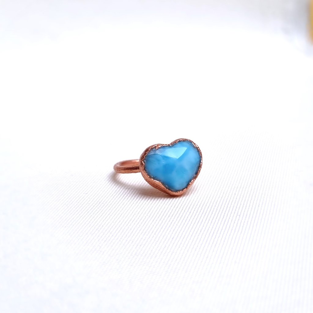 Měděný prsten s larimarem ve tvaru srdce, vel. 51 Autorská tvorba šperků z minerálů