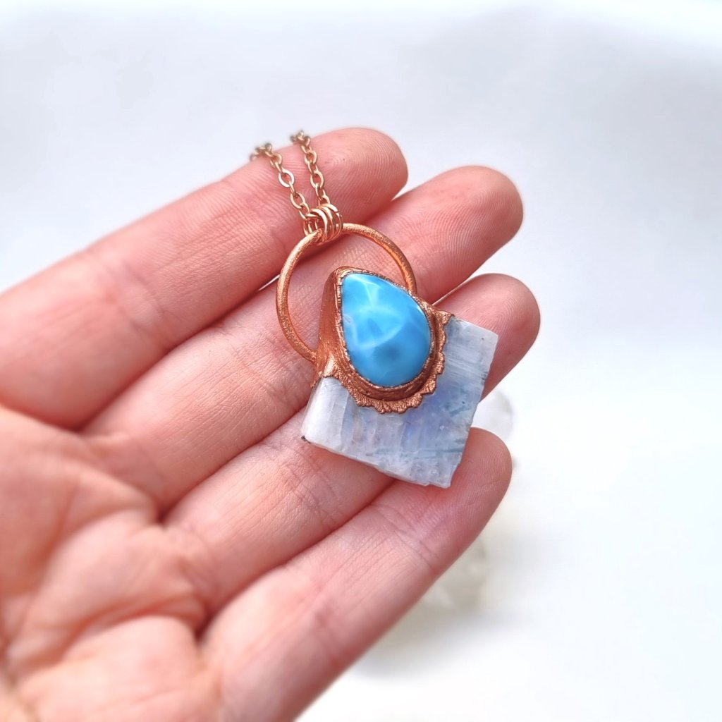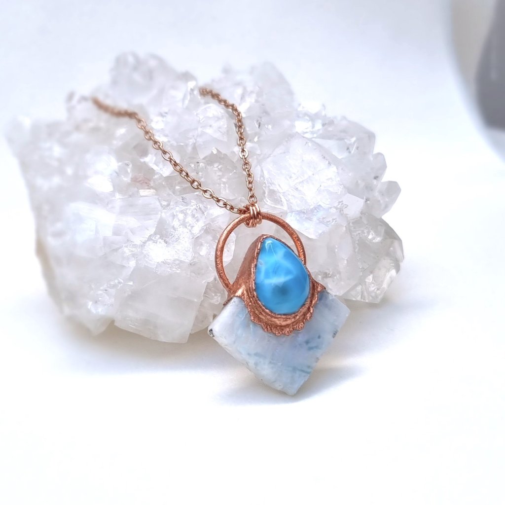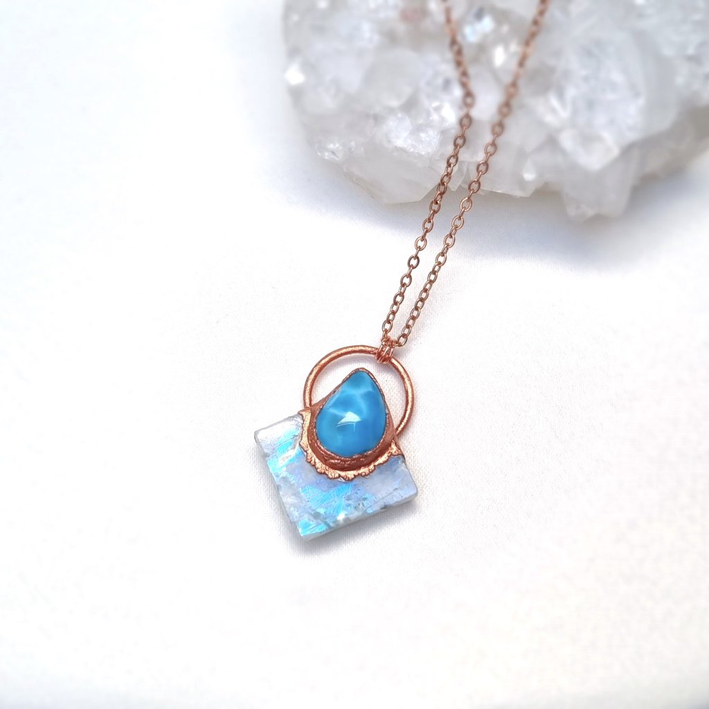 Měsíční kámen a larimar - přívěsek/náhrdelník ŠPERKY S PŘÍRODNÍMI KRYSTALY