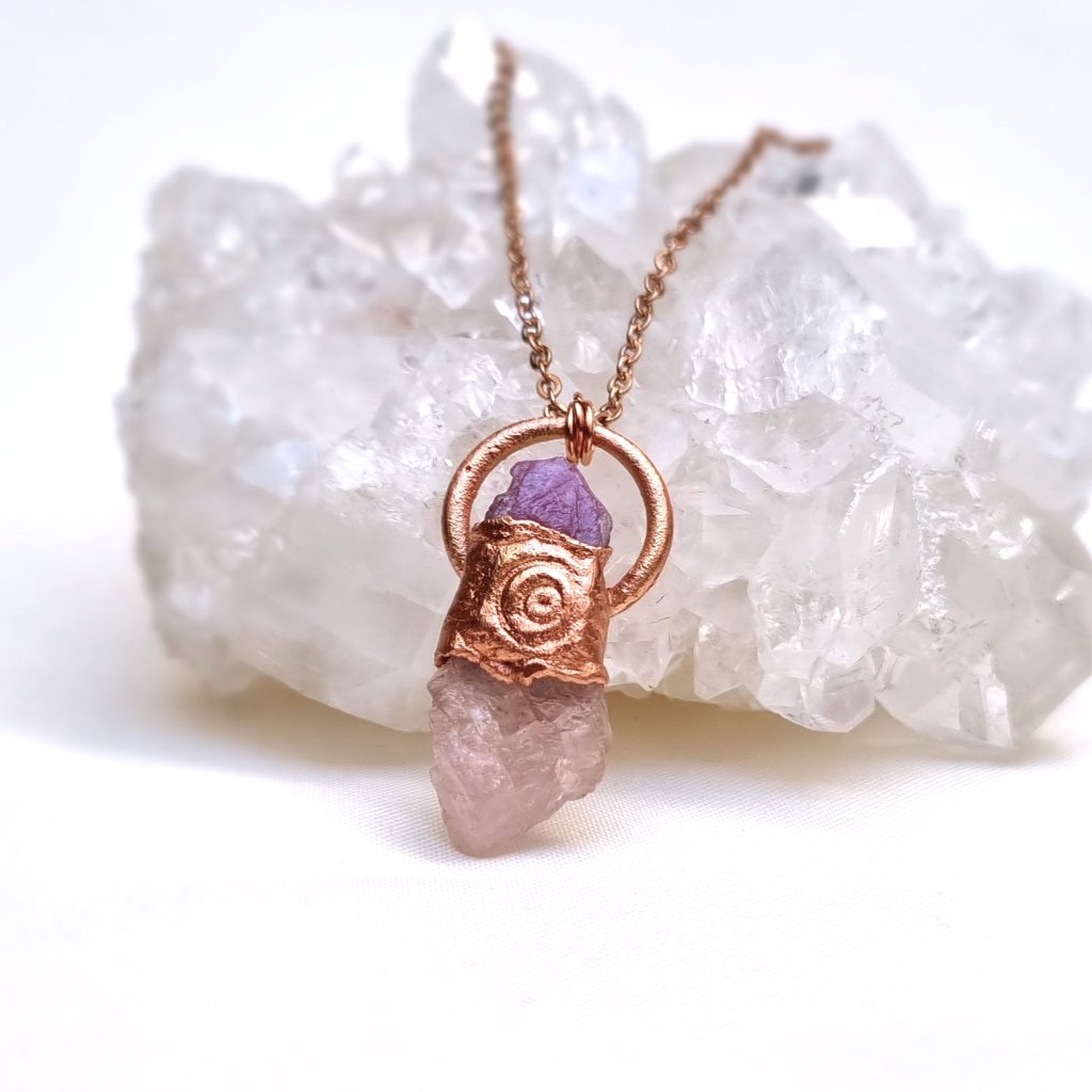 Morganit a rubín Strážce záznamů - autorský šperk ŠPERKY S PŘÍRODNÍMI KRYSTALY