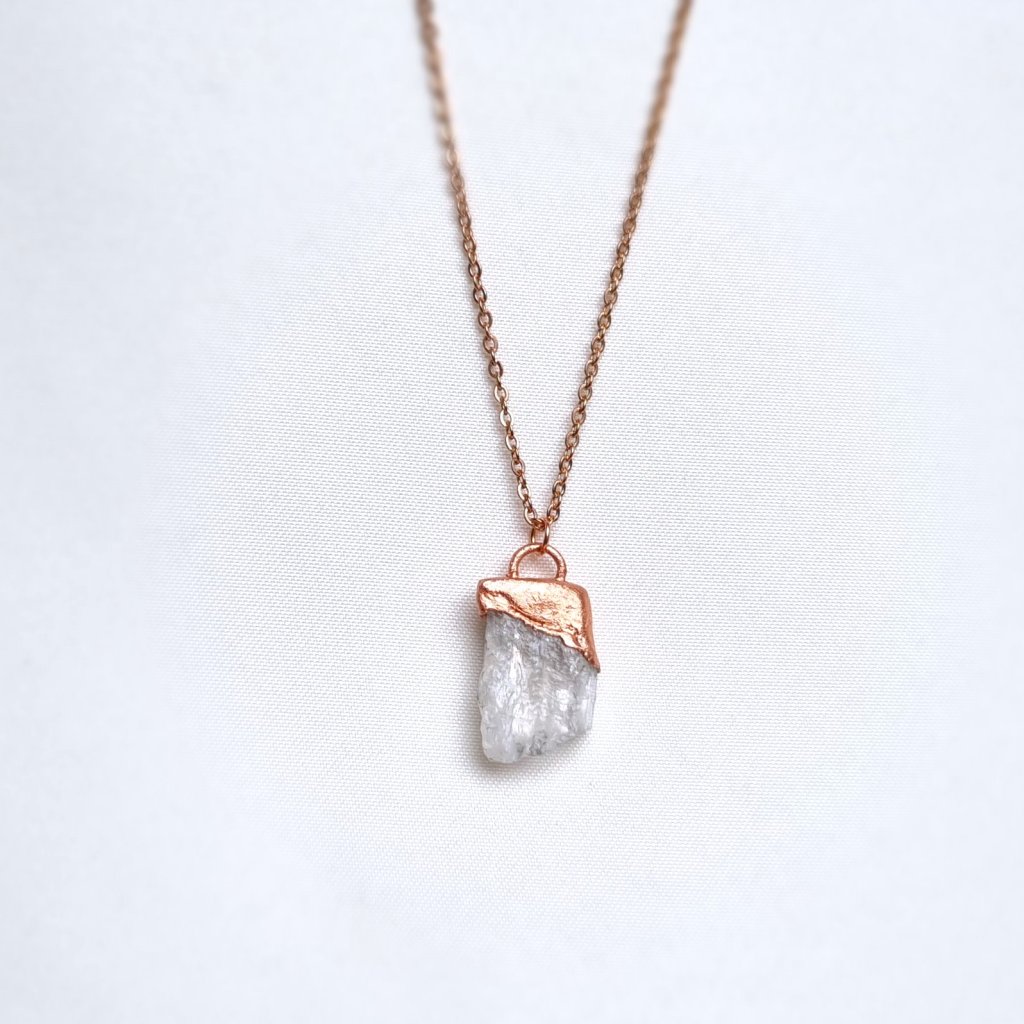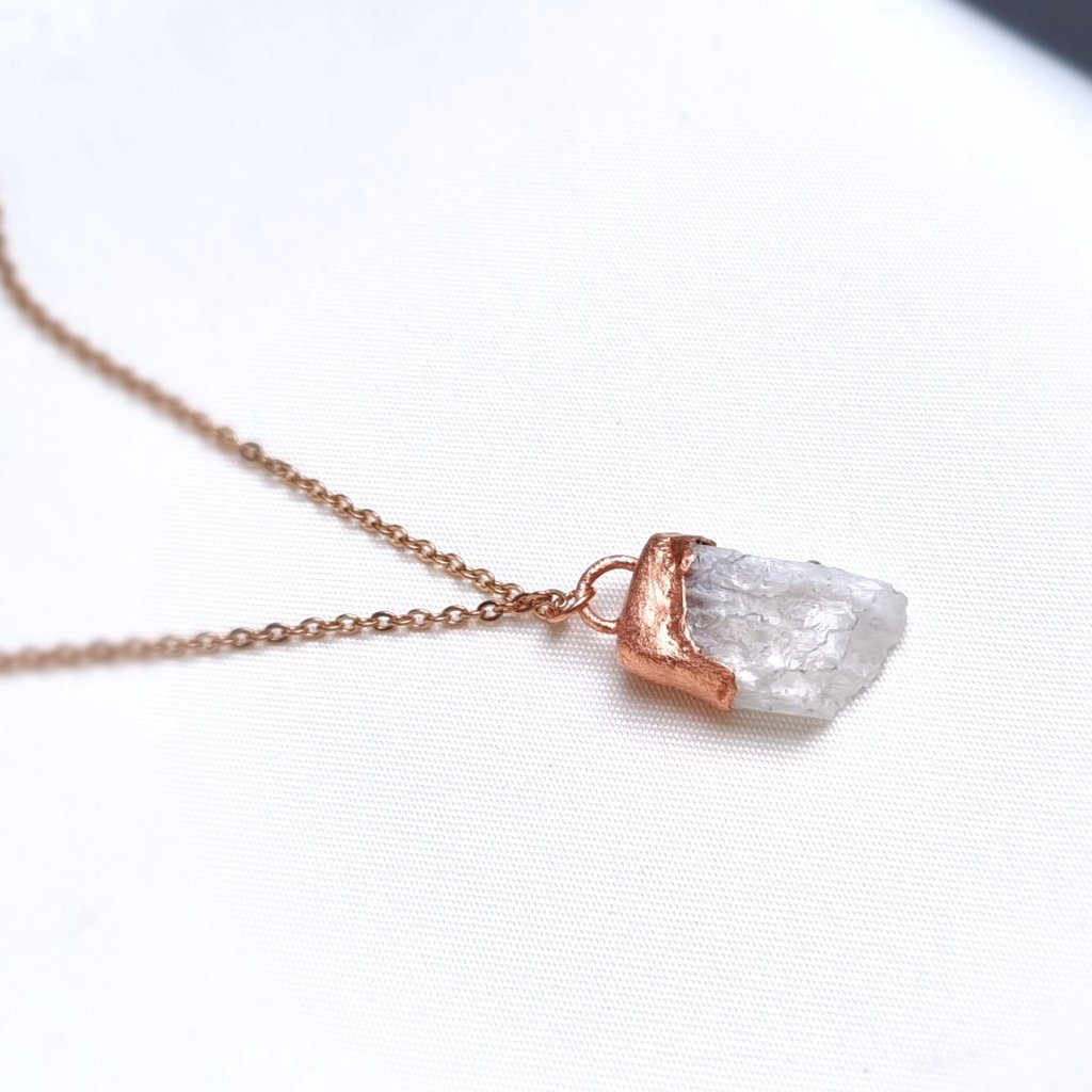 Ve šperku přináší pocit jemnosti a klidu — působí jako malý světelný fragment, který zachytává tichou krásu minerálu v jeho přirozené podobě.