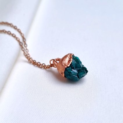 Autorský šperk, který tvoří srostlice krystalů DIOPTASU z Konga, jež září sytě smaragdově zelenou barvou. Dioptas je minerál, který v sobě nese...