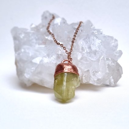 Autorský šperk z brazilianitu - tento originální šperk tvoří vzácný přírodní brazilianit – krystal se světle žluto-zelenou září, který působí jako kapka sluneční energie ukrytá...