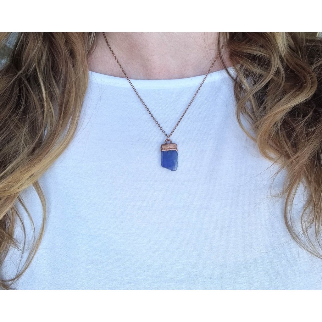 Autorský šperk s přírodním modro-fialovým tanzanitem. Tanzanit je přírodní, nebroušený, tak - jak jej stvořila sama příroda. Tanzanit se nachází na jediném místě na světě - v Tanzanii, lokalitě Merelani Hills poblíž posvátné hory Mount Meru a proto patří mezi nejvzácnější drahé kameny světa. Psala jsem o něm také článek na blogu Tanzanit – vzácný drahokam z Merelani v Tanzanii, který ohromí svou krásou