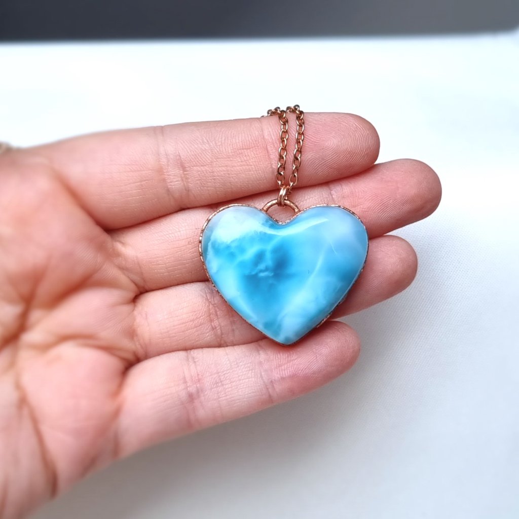 Top Larimar srdce (Dominikánská republika) - šperk/náhrdelník AUTORSKÁ TVORBA ŠPERKŮ Z MINERÁLŮ