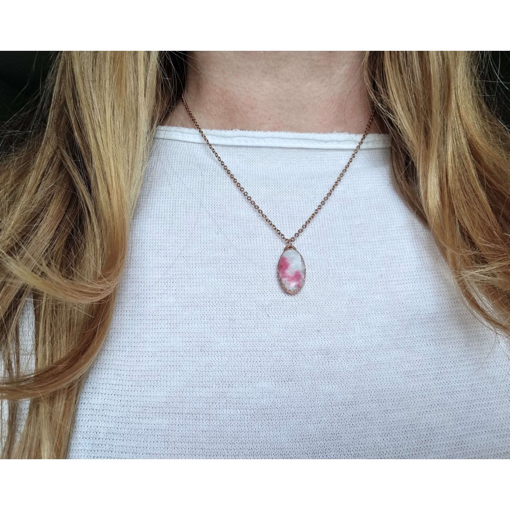 Přívěsek je zavěšen na řetízku z chirurgické oceli, zlaceném růžovým zlatem. Délka řetízku je cca 50 cm. Pokud máte zájem o jinou délku, napište mi do poznámky.