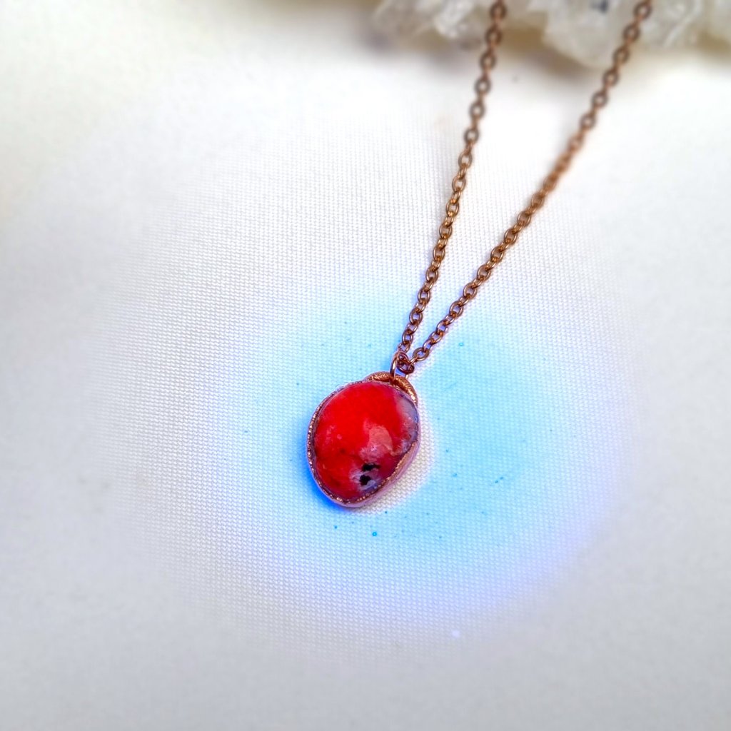 Tugtupit vzácný magický drahokam z Grónska - šperk/náhrdelník AUTORSKÁ TVORBA ŠPERKŮ Z MINERÁLŮ