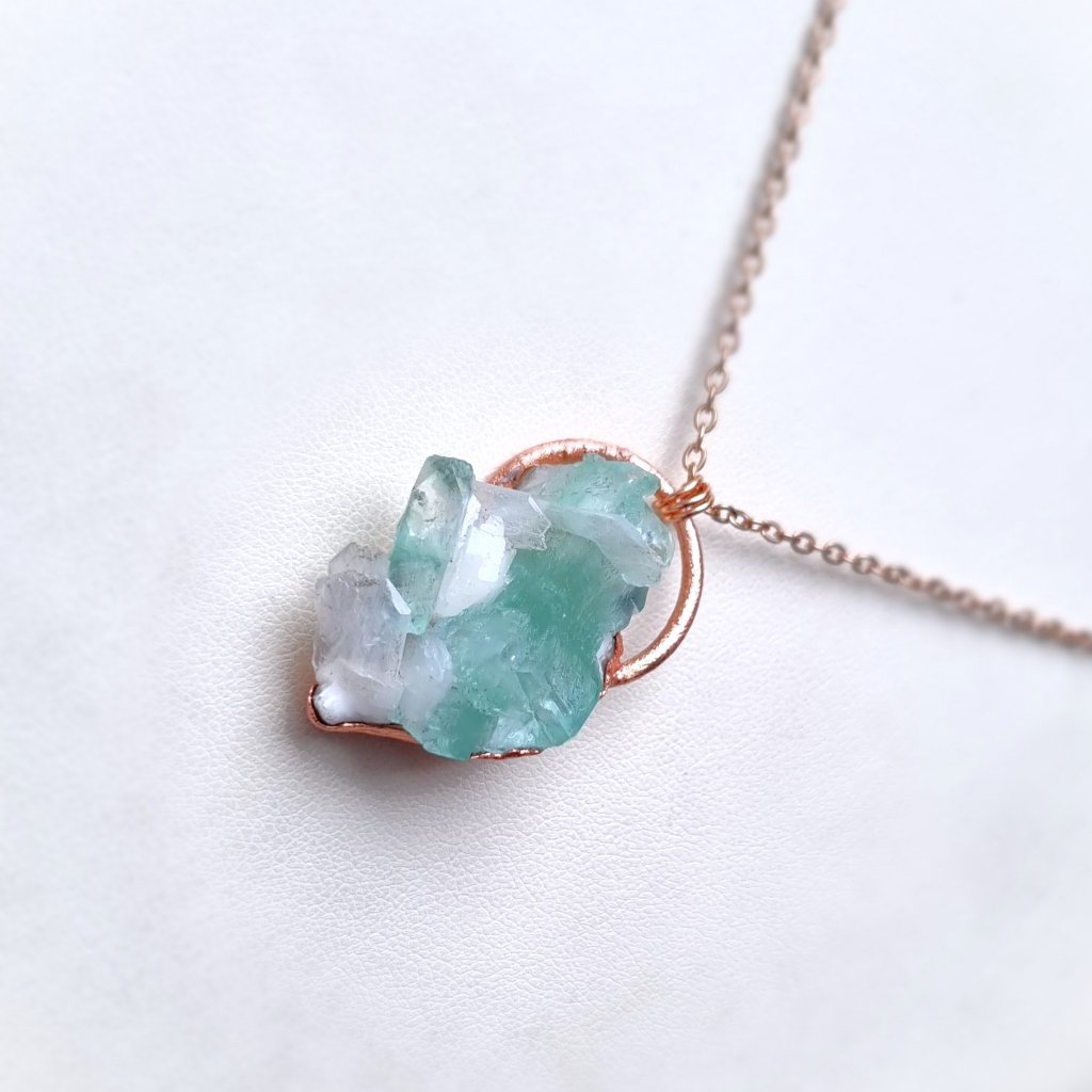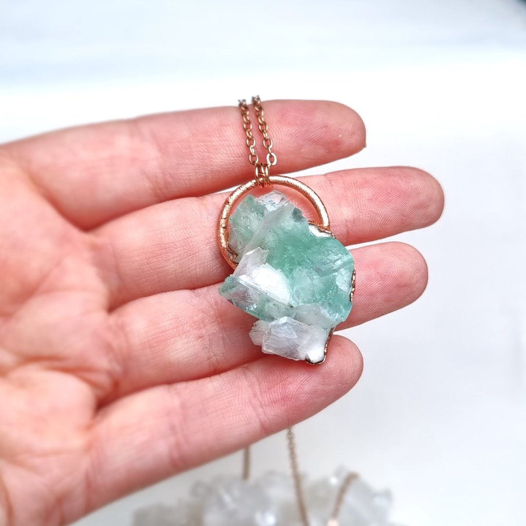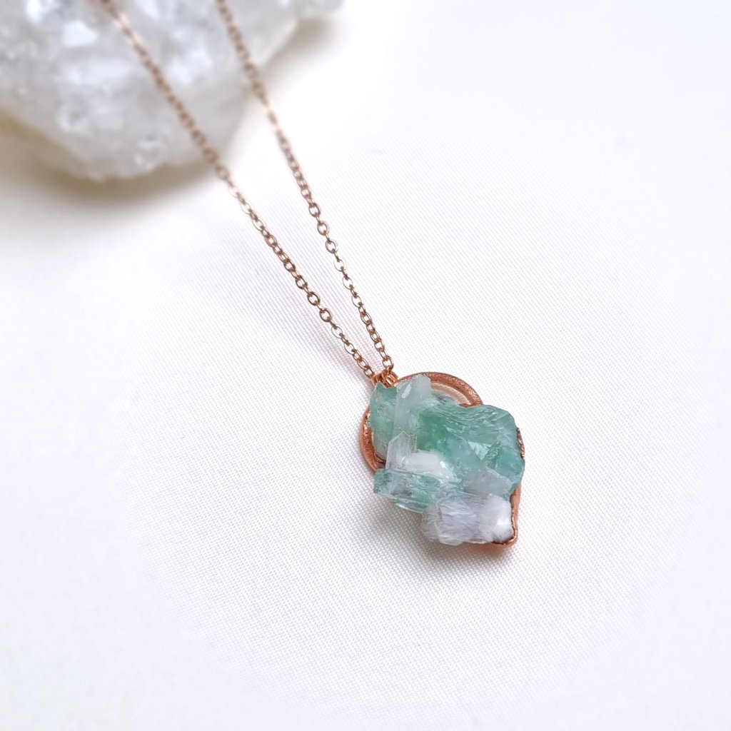 Vzácný modro-zelený apofylit a stilbit - šperk/náhrdelník ŠPERKY S PŘÍRODNÍMI KRYSTALY